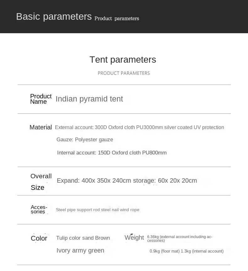القماش : 300D أكسفورد PU3000mm المغلفة ومقاومة للأشعة فوق البنفسجية