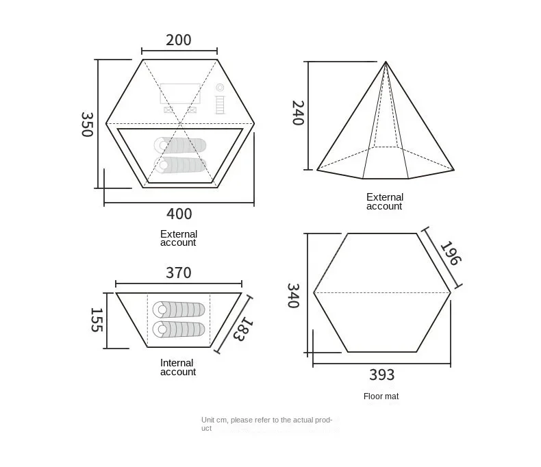 الابعاد : 400x350x240 سنتيمتر _ وعند التخزين: 60x20x20cm